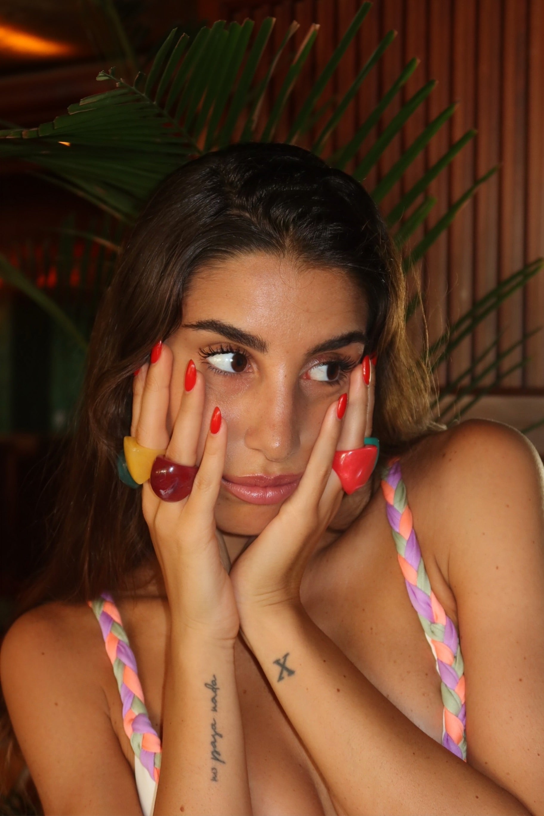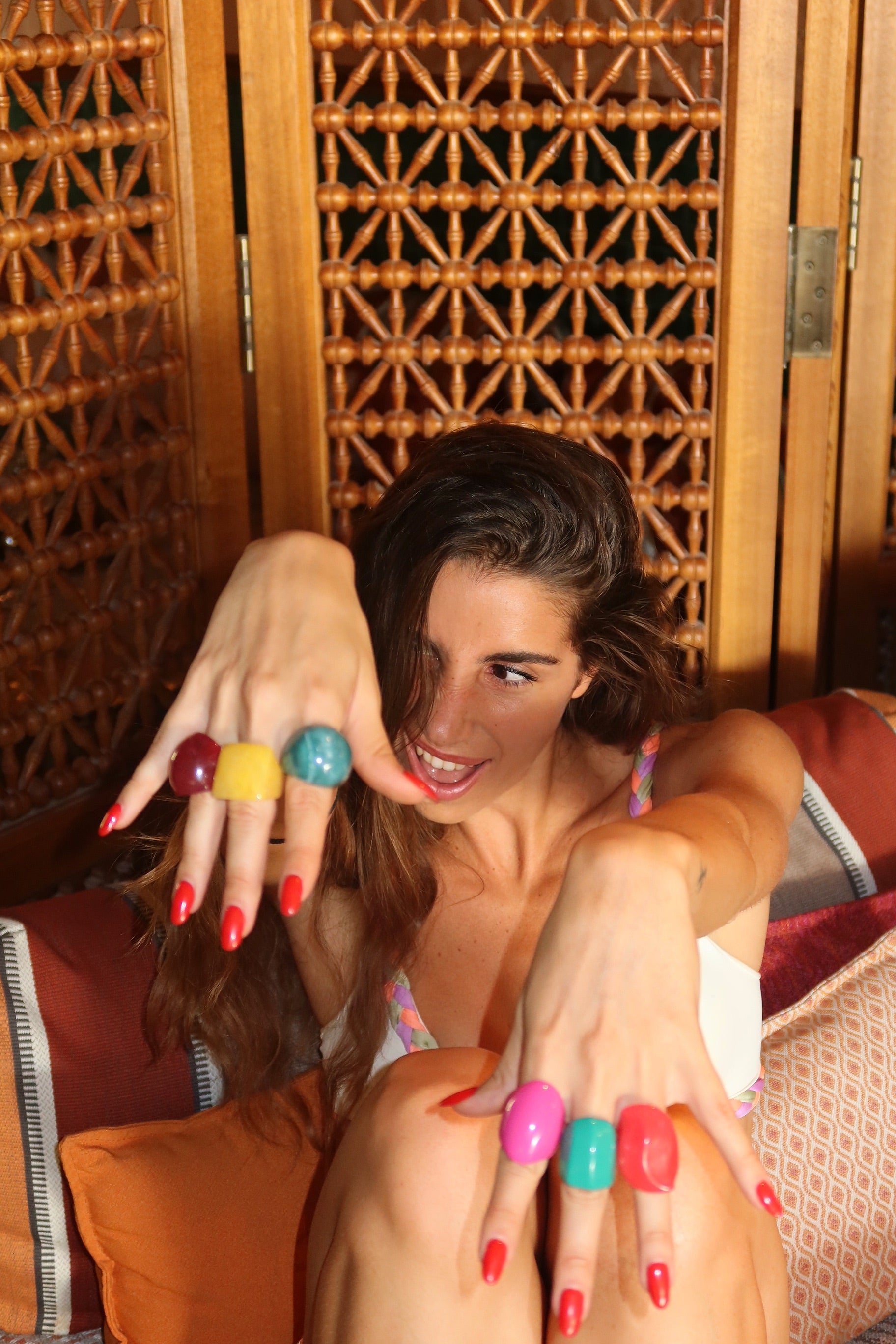 Dolci come caramelle, allegri come un giorno di festa! Questi anelli colorati sembrano usciti da una scatola di bonbon: lucidi, brillanti e irresistibili, donano un tocco pop e spensierato a ogni mano. Con le loro forme morbide e i colori vivaci. Sono un invito a giocare con la moda senza prendersi troppo sul serio.